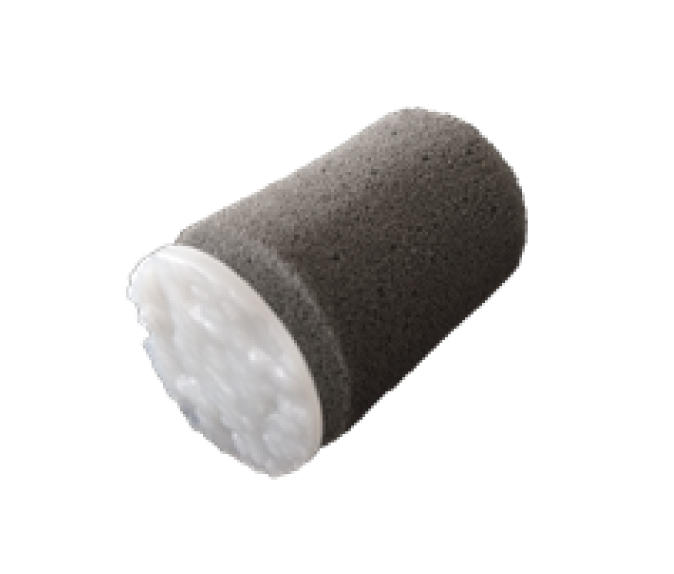 Verschlussstopfen aus imprägniertem PU-Weichschaumstoff und Abdeckkappe in Putzoptik zum sicheren und schnellen Abdichten von Gerüstlöchern. Die Aufweitung des Gerüstloches erfolgt mit Hilfe des Handfräsers.
